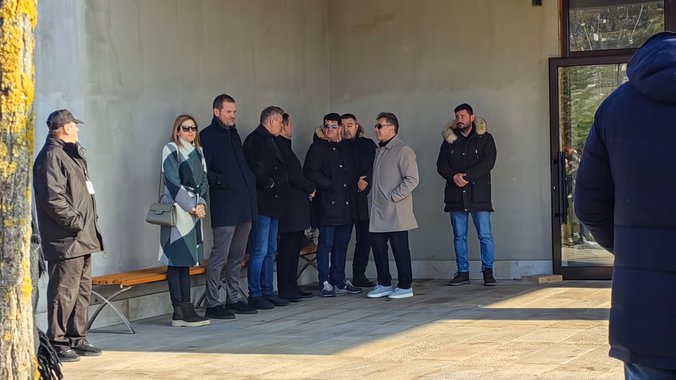 Nemanja Vidić, vidno slomljen od bola, stoji ispred kapele i prima saučešće brojnih prijatelja i saboraca.