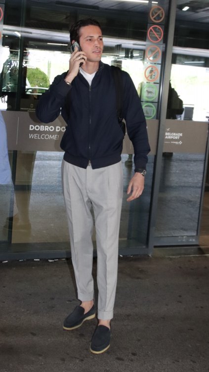 Naš paparaco uslikao je Dušana Mihajlovića, sina legendarnog fudbalera Siniša Mihajlović, na beogradskom aerodromu, gde je odmah privukao pažnju prisutnih.